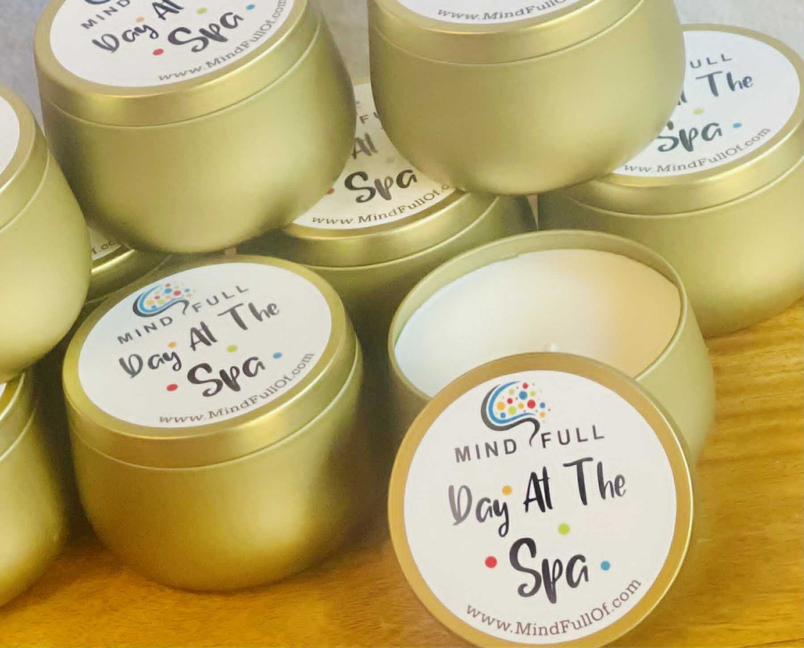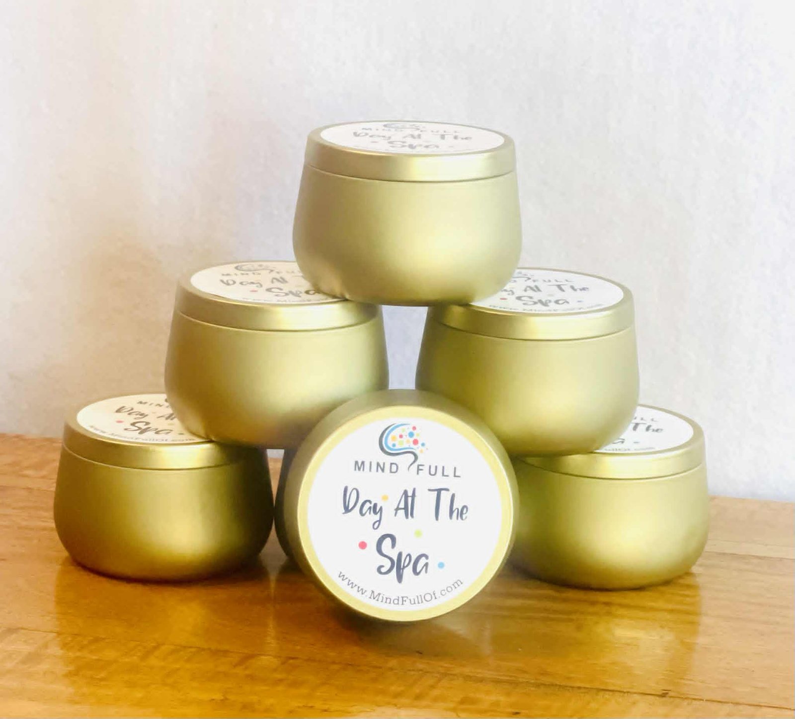 8oz tin with lid in soft brushed gold finish.